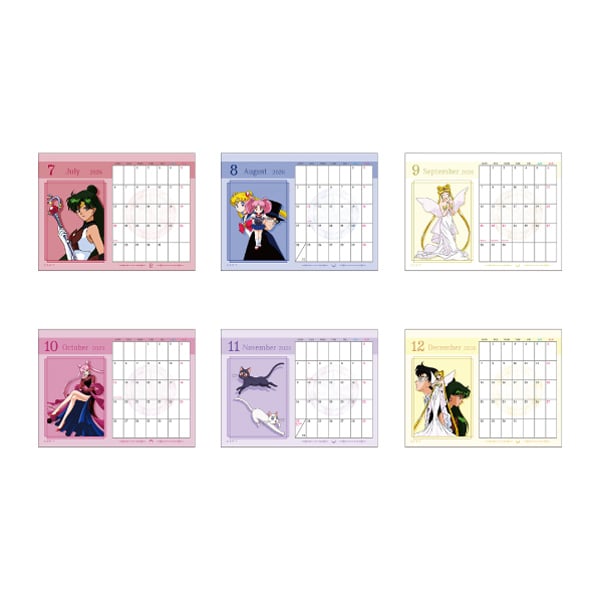 The calendar features a monthly design featuring the Sailor Soldiers and other characters.