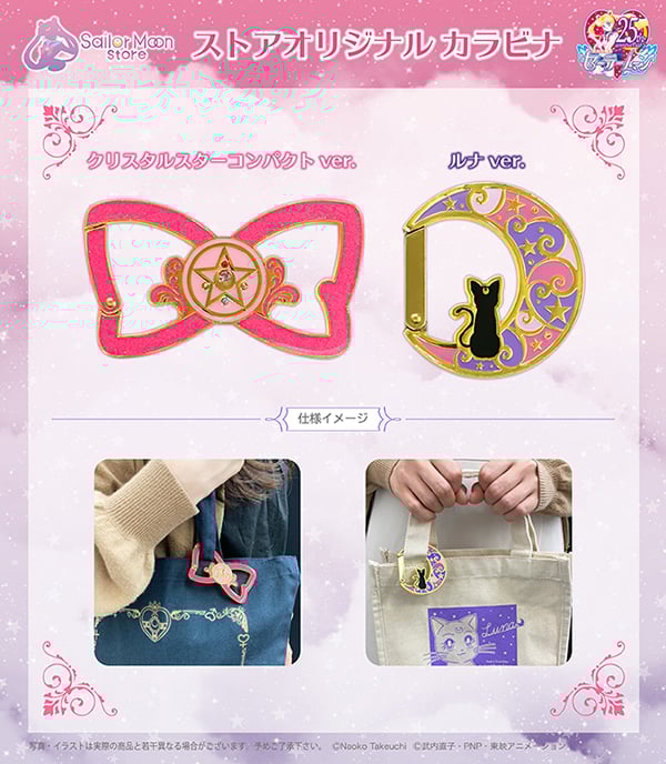 Sailor Moon store original carabiner. There are two designs to choose from: Luna or Crystal Star.