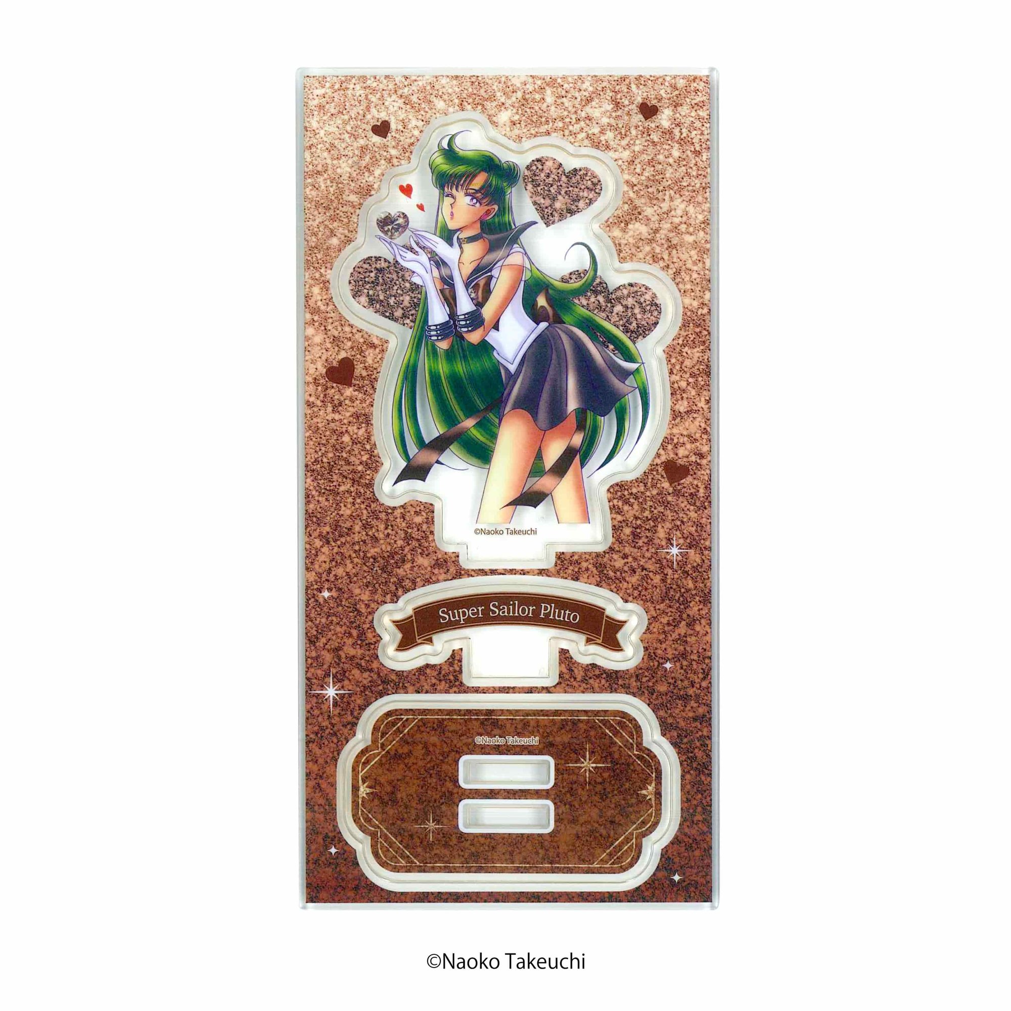 This acrylic stand features adorable kissing faces of the 10 Sailor Guardians , using newly drawn illustrations that were used for the designs on "Fruit Gummy" and "Garbo" candies .