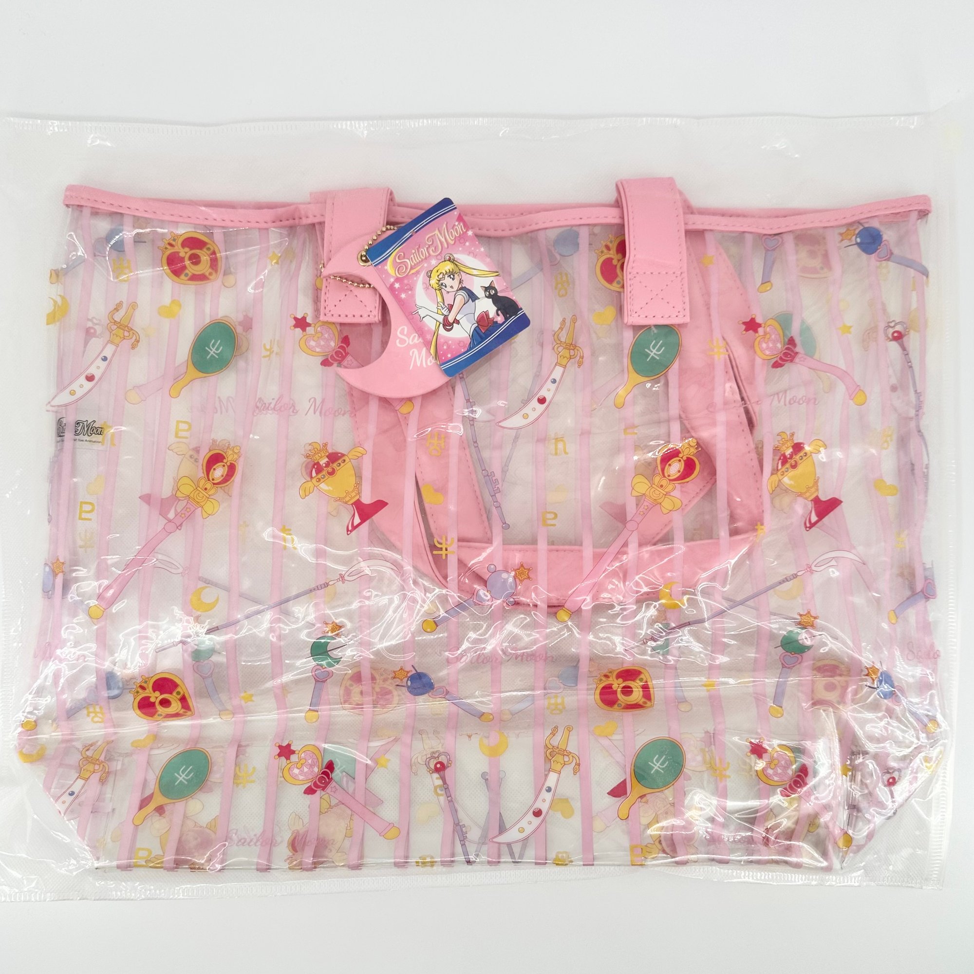Rare and very hard to find Sailor Moon x Hong Kong collaboration large clear beach tote. Comes with cute moon bag charm. The bag is designed with Sailor Moon items icons pattern throughout. New with tag. Only one available.