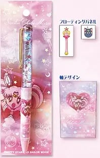 Sailor Moon Cosmic Memories Floating Pen. Black color pen, 1mm. Beautiful glitter with Chibi Moon's wand and Luna P floating.