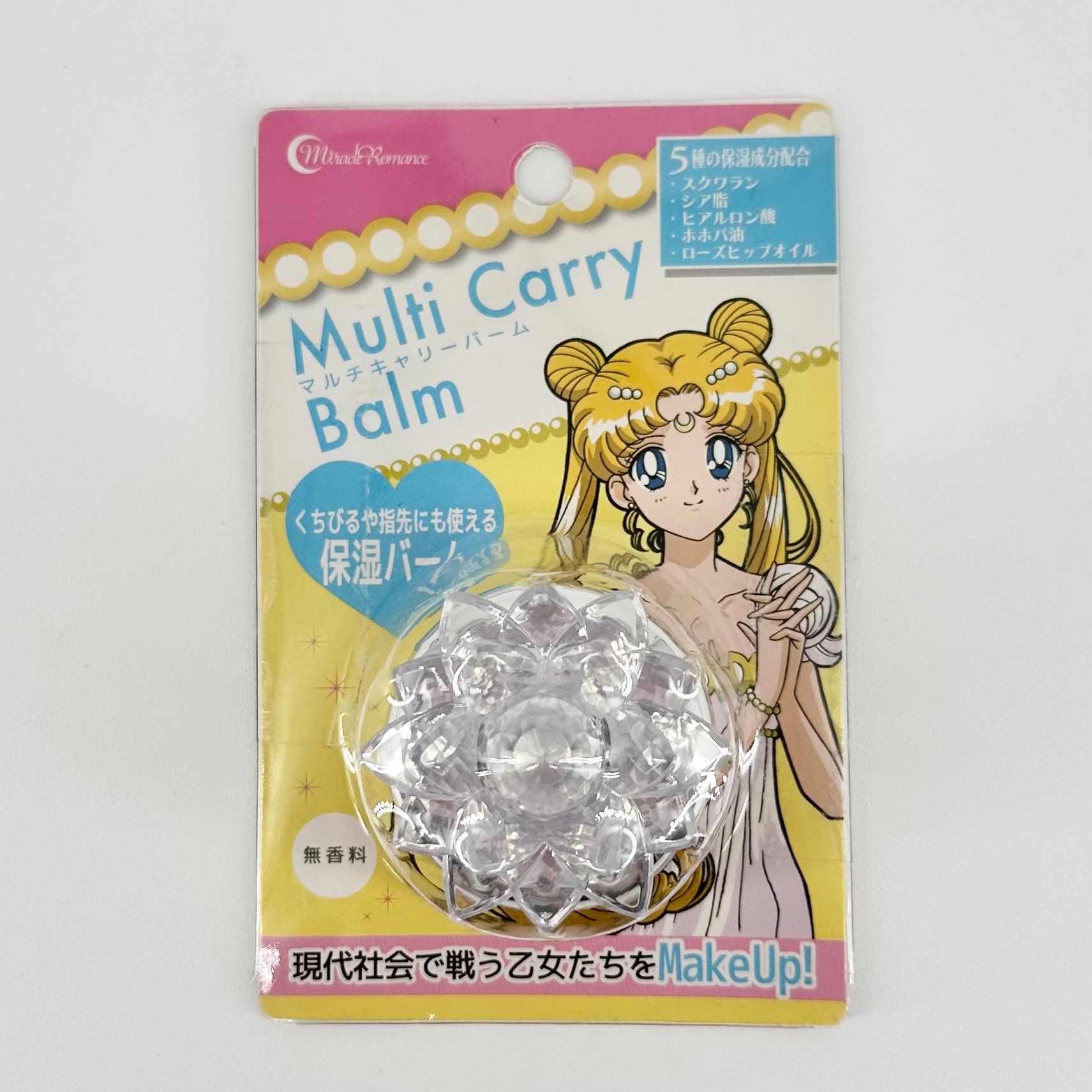 Very rare Sailor Moon Miracle Romance Silver Crystal Multi Carry Balm. Moisturizing balm from the Sailor Moon 20th Anniversary collection. Made with squalane, shea butter, hyaluronic acid, jojoba oil, and rose hip oil. Compact and convenient for travel. May be used on lips and body.