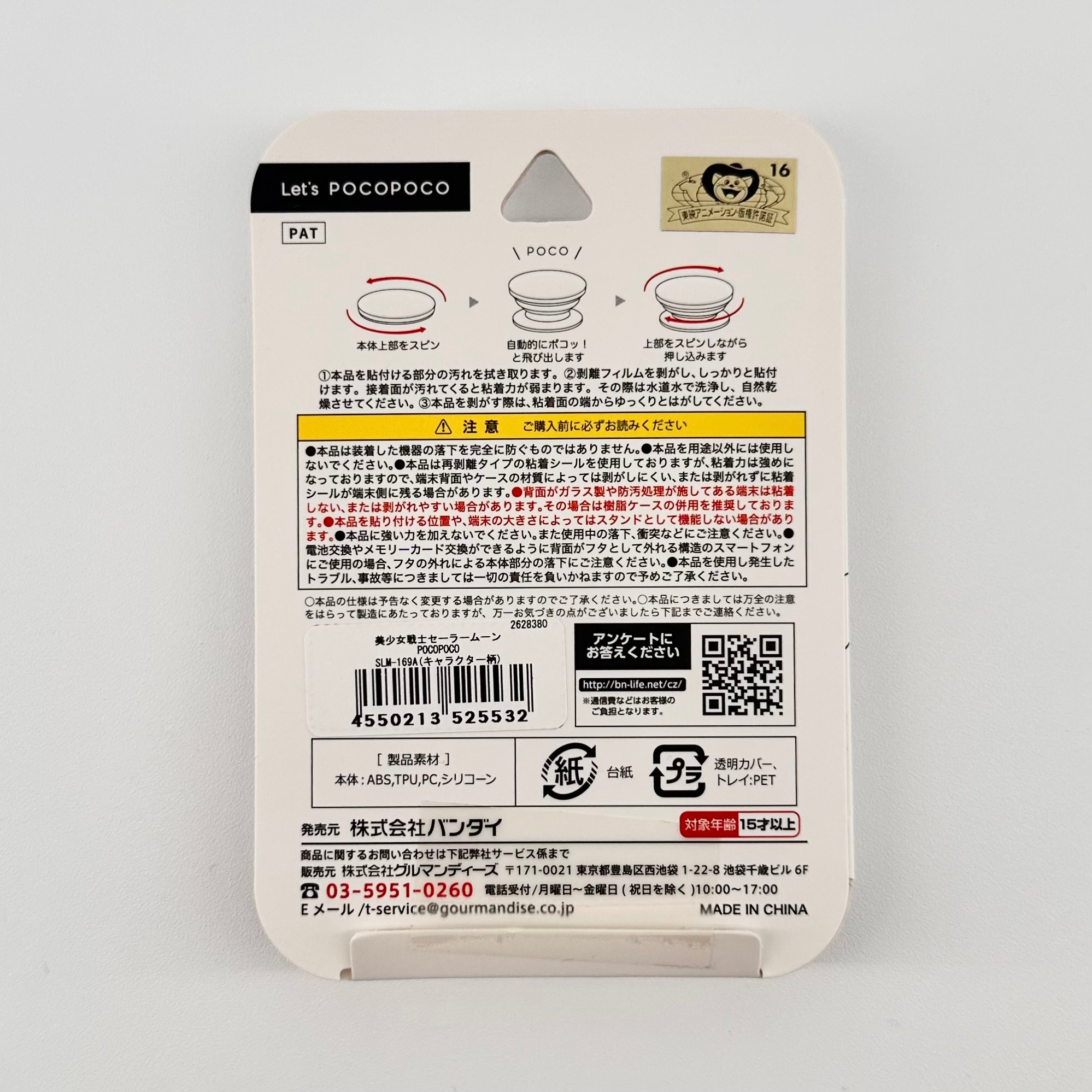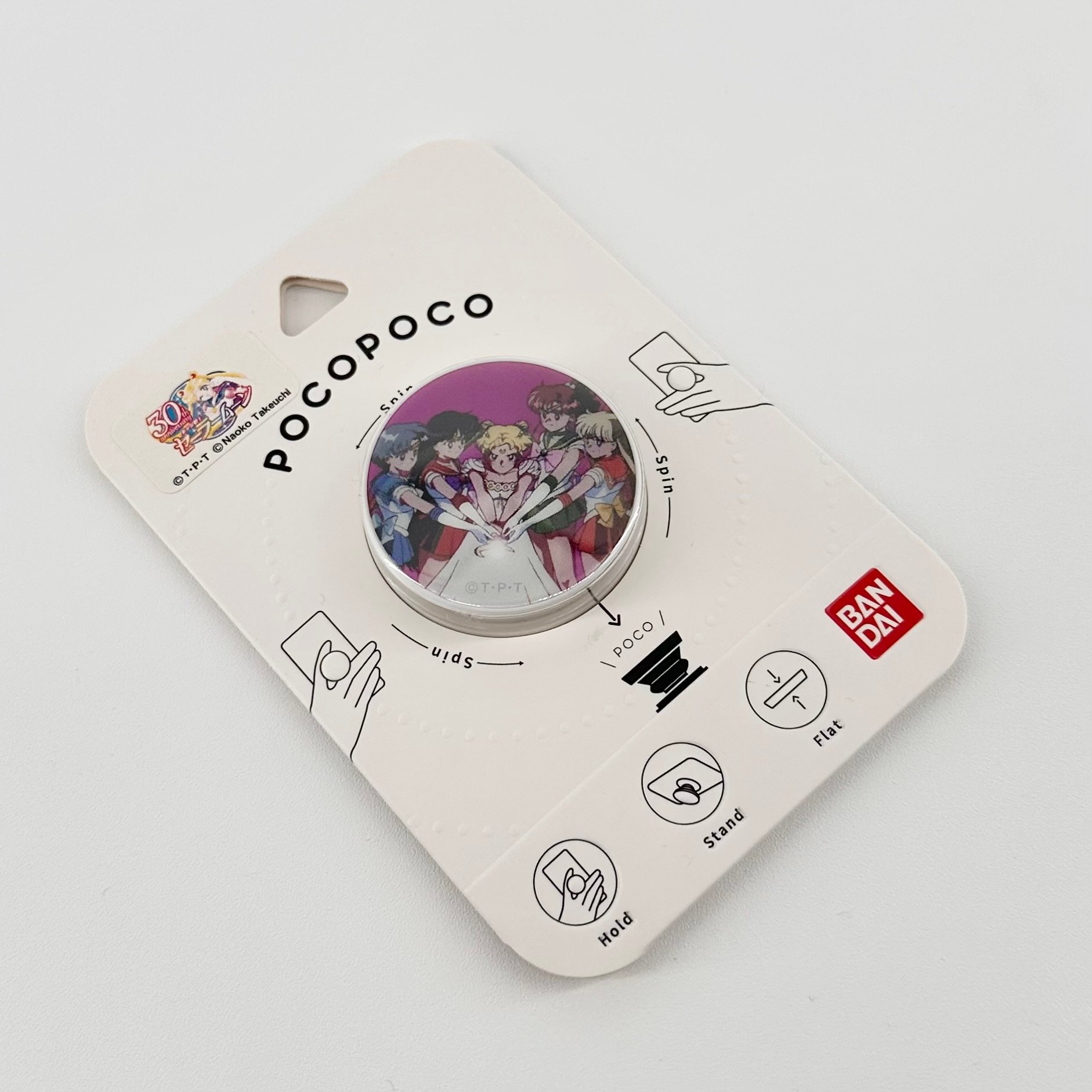 Rare and hard to find Sailor Moon x Gourmandise Pocopoco Smartphone Grip, featuring anime artwork of Princess Serenity and the inner senshi. New in box.