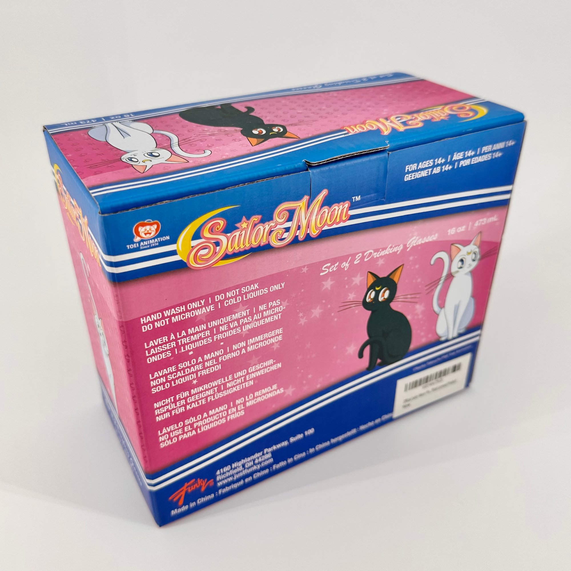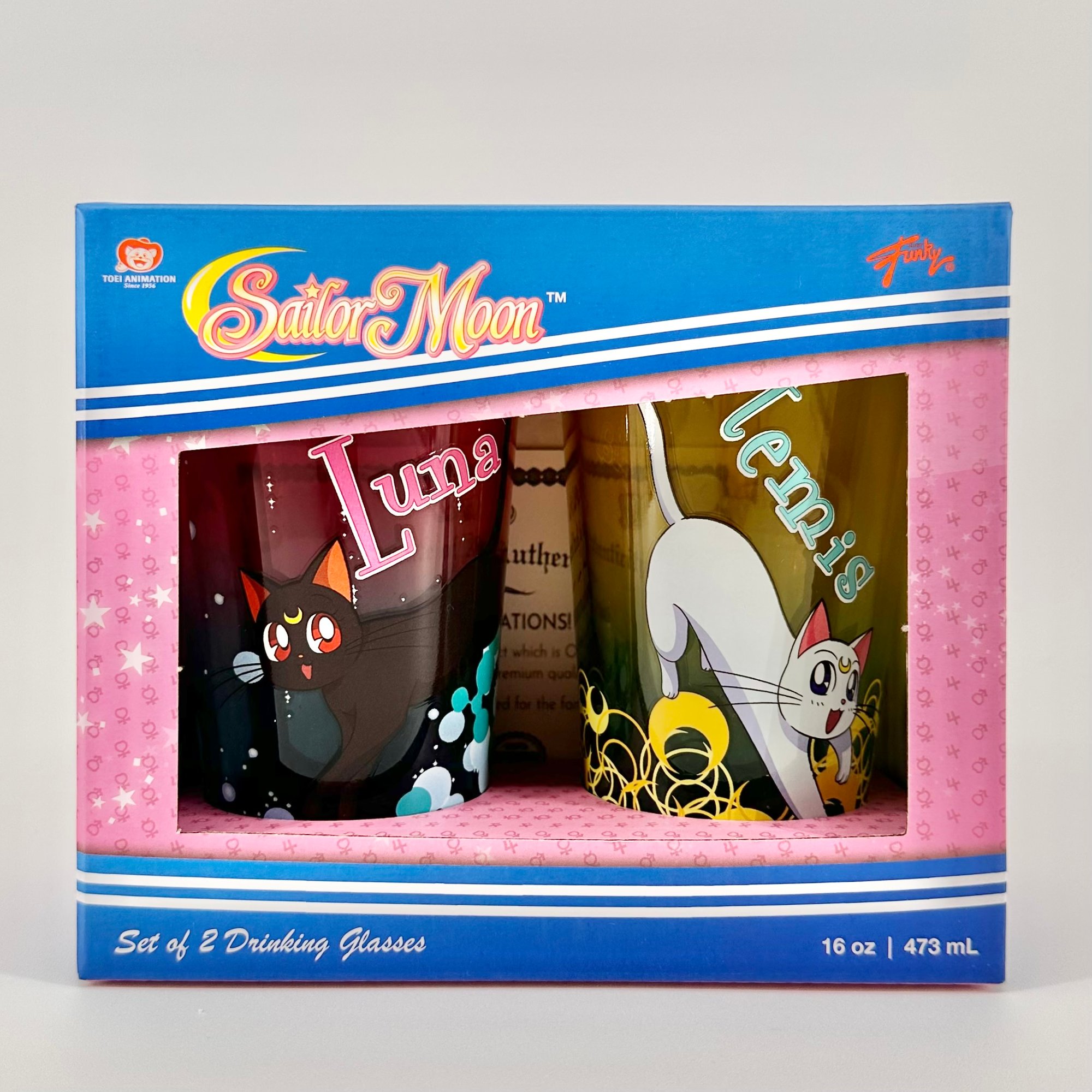 Officially licensed Sailor Moon x Just Funky Luna and Artemis glass cup set. Two 16 ounce cups. New in original box.