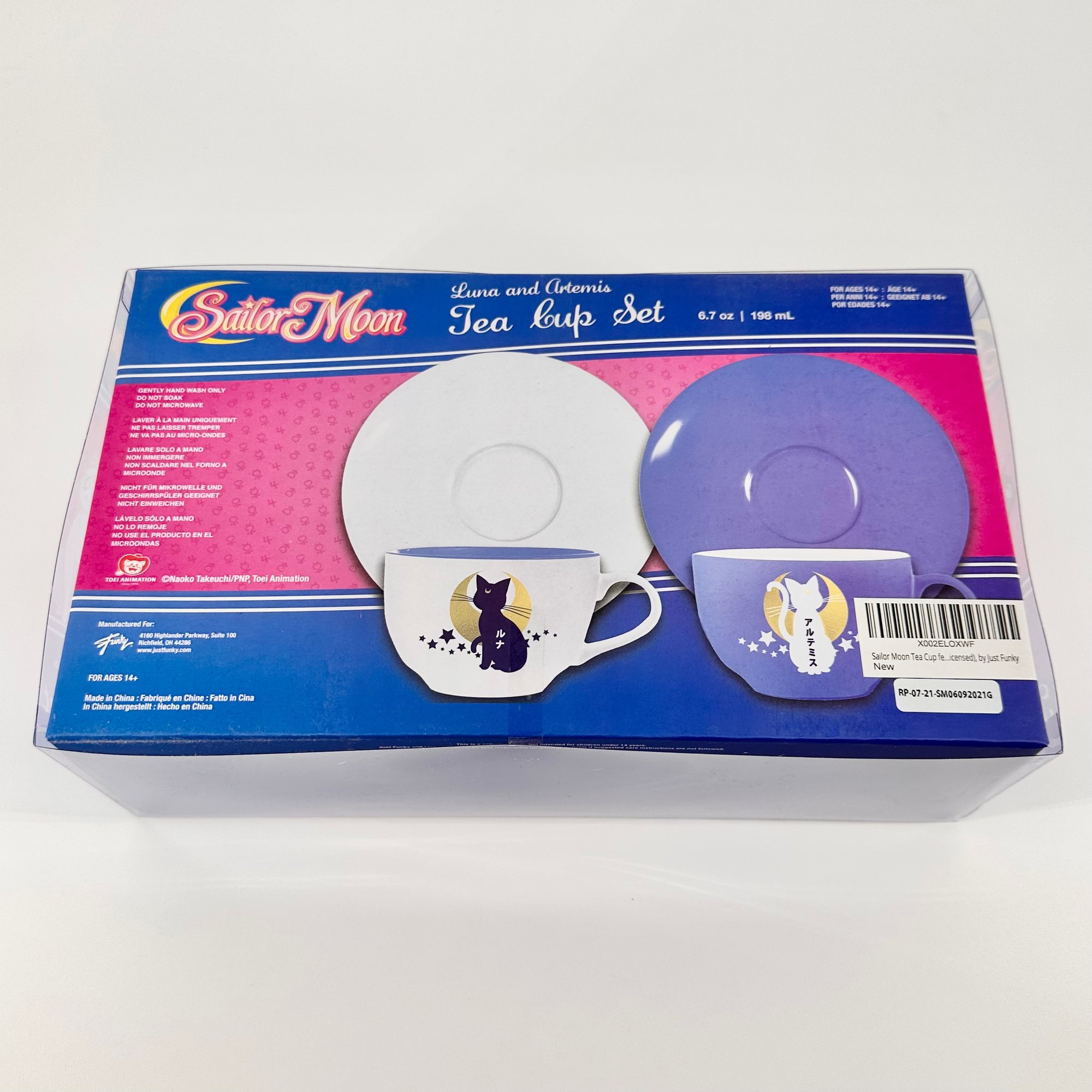 Officially licensed Sailor Moon x Just Funky Luna and Artemis tea cup and saucer set. 6.7 ounce cups. New and in original packaging.